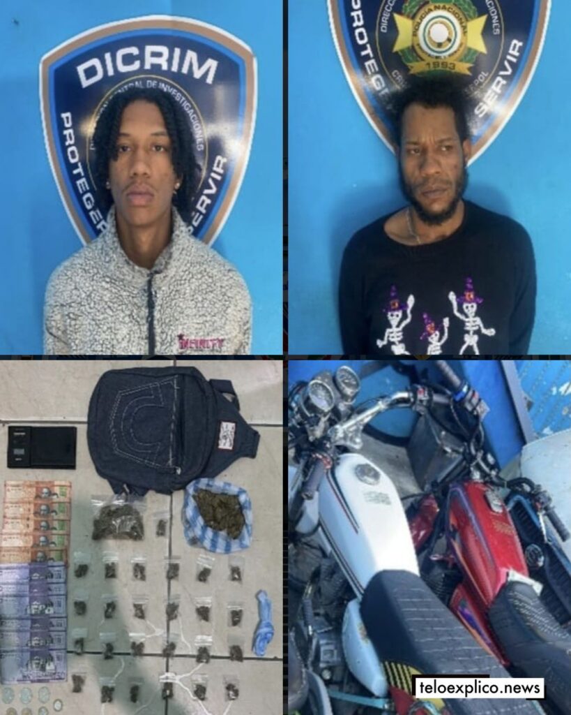 En esa intervención, se les ocupó una bulto pequeño, azul, conteniendo en su interior más de 90 porciones de un vegetal verdoso, presumiblemente marihuana, y la suma RD$905 pesos en efectivo.