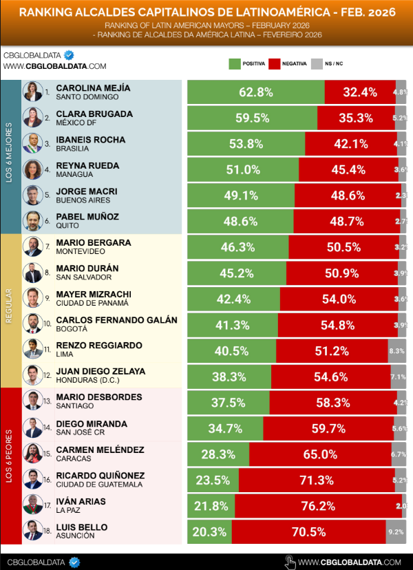 Carolina encabeza ranking de alcaldes capitalinos de Latinoamérica