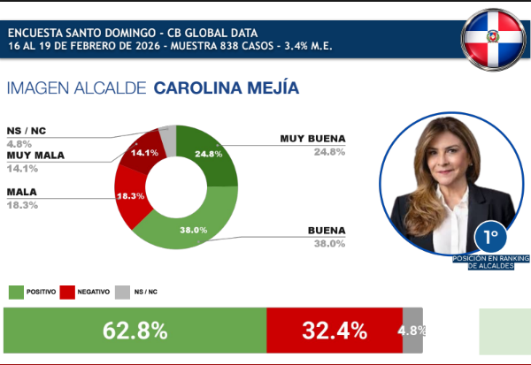 Los resultados de esta medición, realizada entre el 16 y el 19 de febrero de 2026, reflejan la percepción de los residentes del Distrito Nacional respecto a la operatividad y los niveles de eficiencia mostrados por la actual administración municipal.