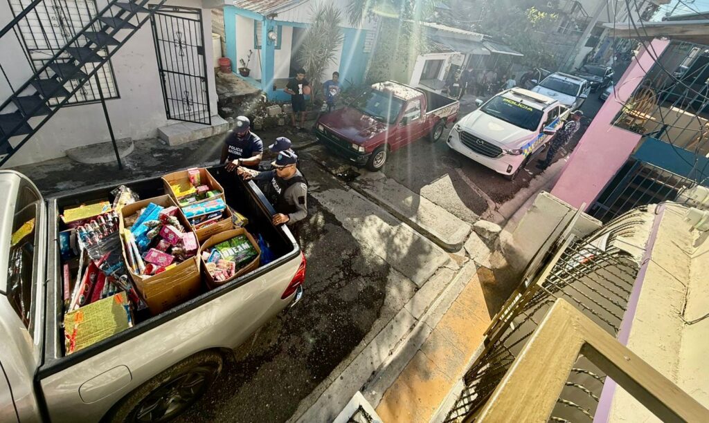 Santiago de los Caballeros- Agentes de la Subdirección Regional Cibao Central de Inteligencia (DINTEL), de la Policía Nacional, en coordinación con la Policía Preventiva y el Ministerio Público, realizaron un allanamiento y cinco operativos simultáneos en distintos sectores de esta provincia, logrando el decomiso de una gran cantidad de fuegos artificiales comercializados de manera clandestina e ilegal.