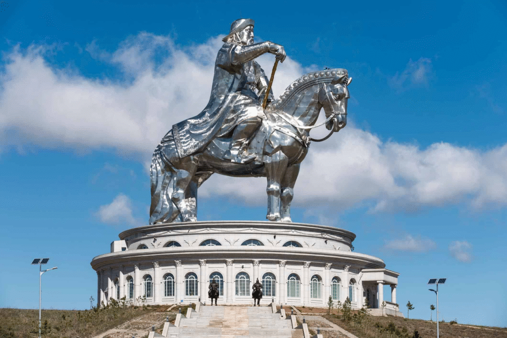 Entre los destinos más emblemáticos de Mongolia se encuentra la Estatua Ecuestre de Gengis Kan, un monumento de 40 metros de altura ubicado en Tsonjin Boldog, a unos 54 kilómetros de Ulán Bator. La obra rinde homenaje al fundador del Imperio Mongol y destaca por su imponente presencia y valor simbólico.