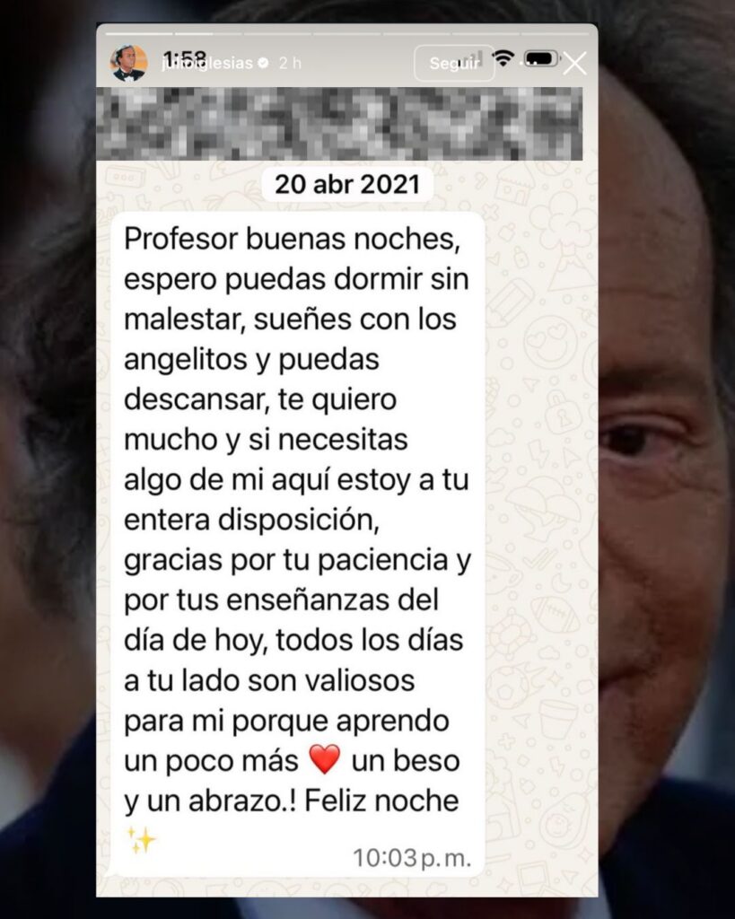 Como parte de su defensa, el cantante compartió capturas de conversaciones de WhatsApp que, según indicó, sostuvo con las denunciantes tanto durante el tiempo en que trabajaron en su residencia como después de haber salido de ella. A su juicio, estos mensajes demostrarían que las acusaciones carecen de veracidad y presentan incoherencias.