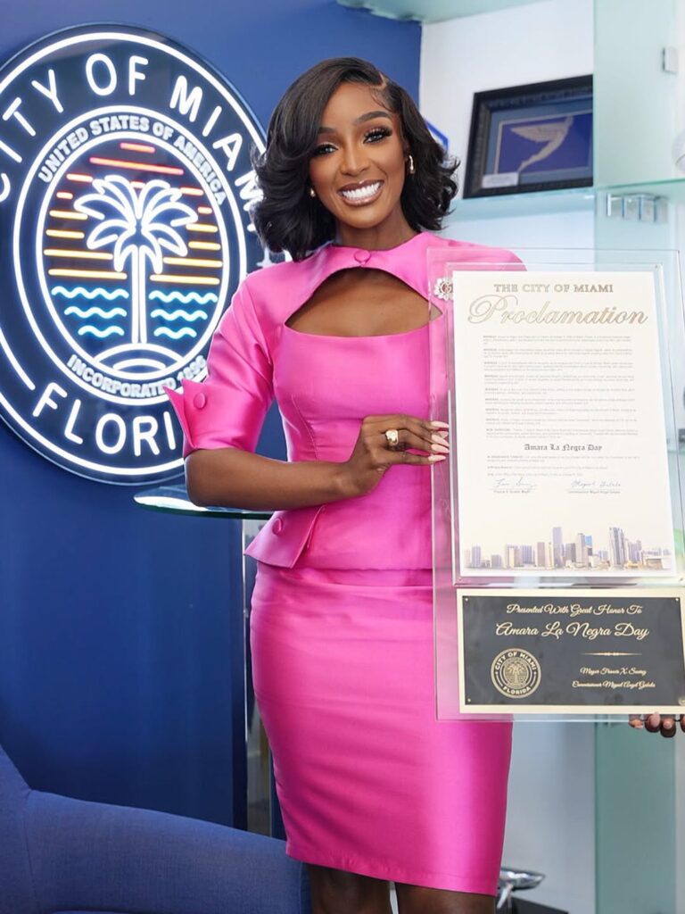 “Fue un honor reconocer a Amara La Negra con una proclamación oficial de la Ciudad de Miami por sus extraordinarias contribuciones a nuestra cultura, nuestra comunidad y a esta ciudad que todos llamamos hogar”, expresó el comisionado Miguel Ángel Gabela durante la ceremonia.