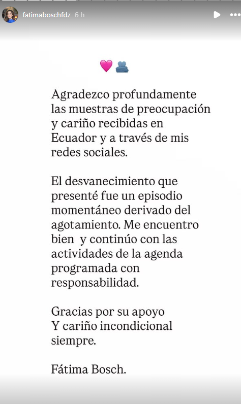Al finalizar su mensaje, Bosch agradeció las muestras de apoyo y cariño recibidas por parte de sus seguidores.