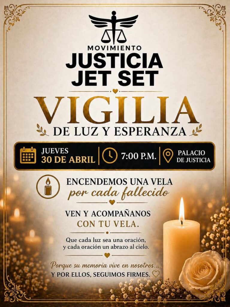 Movimiento Justicia Jet Set convoca vigilia de luz y esperanza por víctimas fallecidas