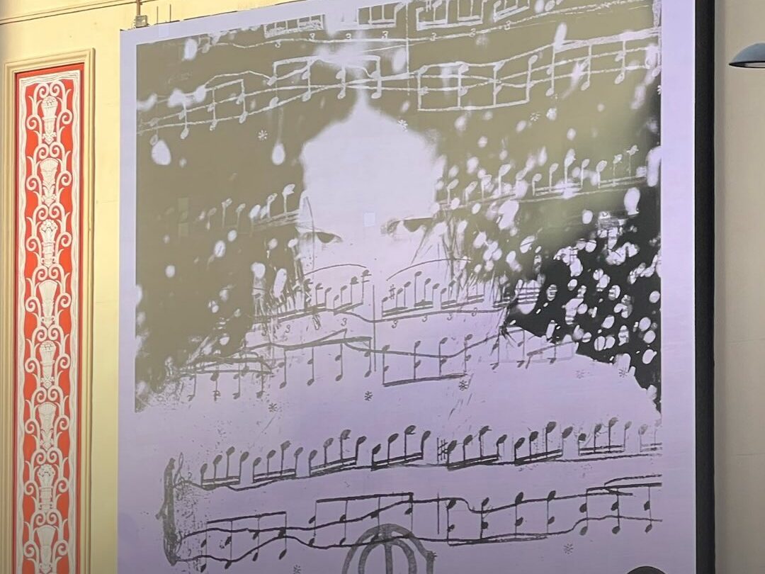 La fachada y el lateral del emblemático cine Callao de la Gran Vía de Madrid también aparecieron este miércoles con el pentagrama, una imagen de Rosalía y un símbolo similar al de la paz.